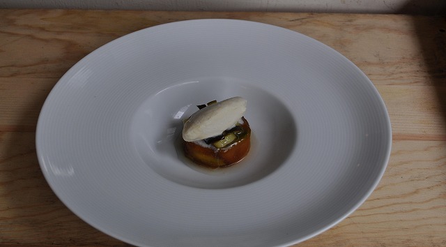 ”カボチャのタルトタタン風 ズッキーニのコンフィチュールと牛蒡のソルベ”